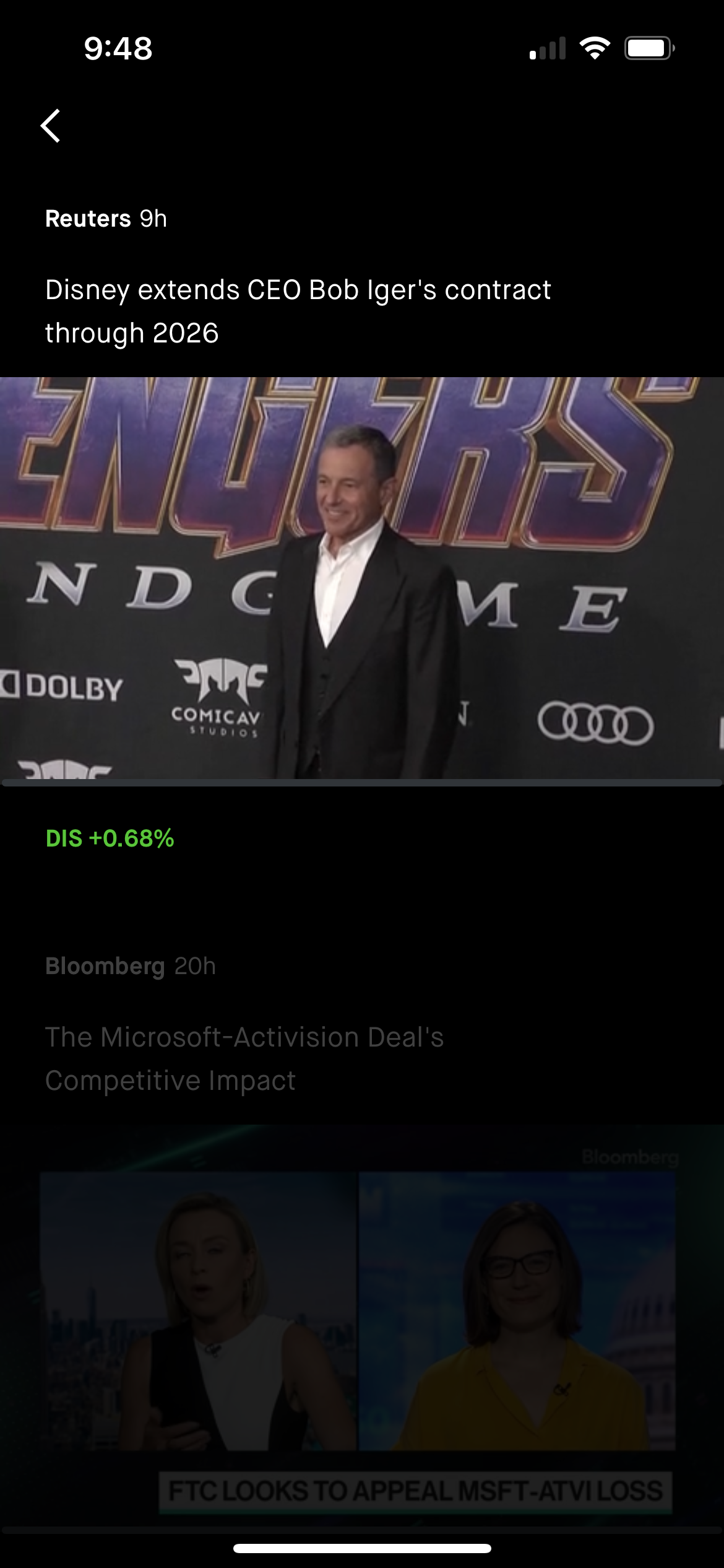 Lastly, another great feature we found on Robinhood is a TikTok-like video feed of relevant market and stock news (again, nothing comparable on E*Trade):