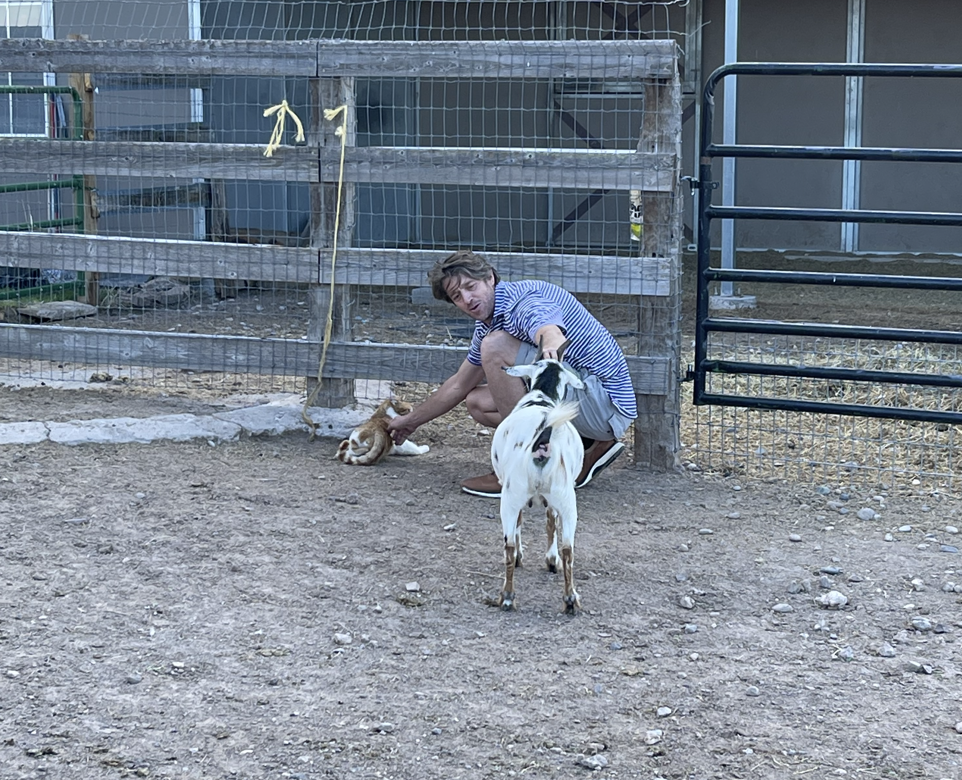 Have a great weekend. I leave you with this shot of my girl goat and barn cat demanding my attention last night.