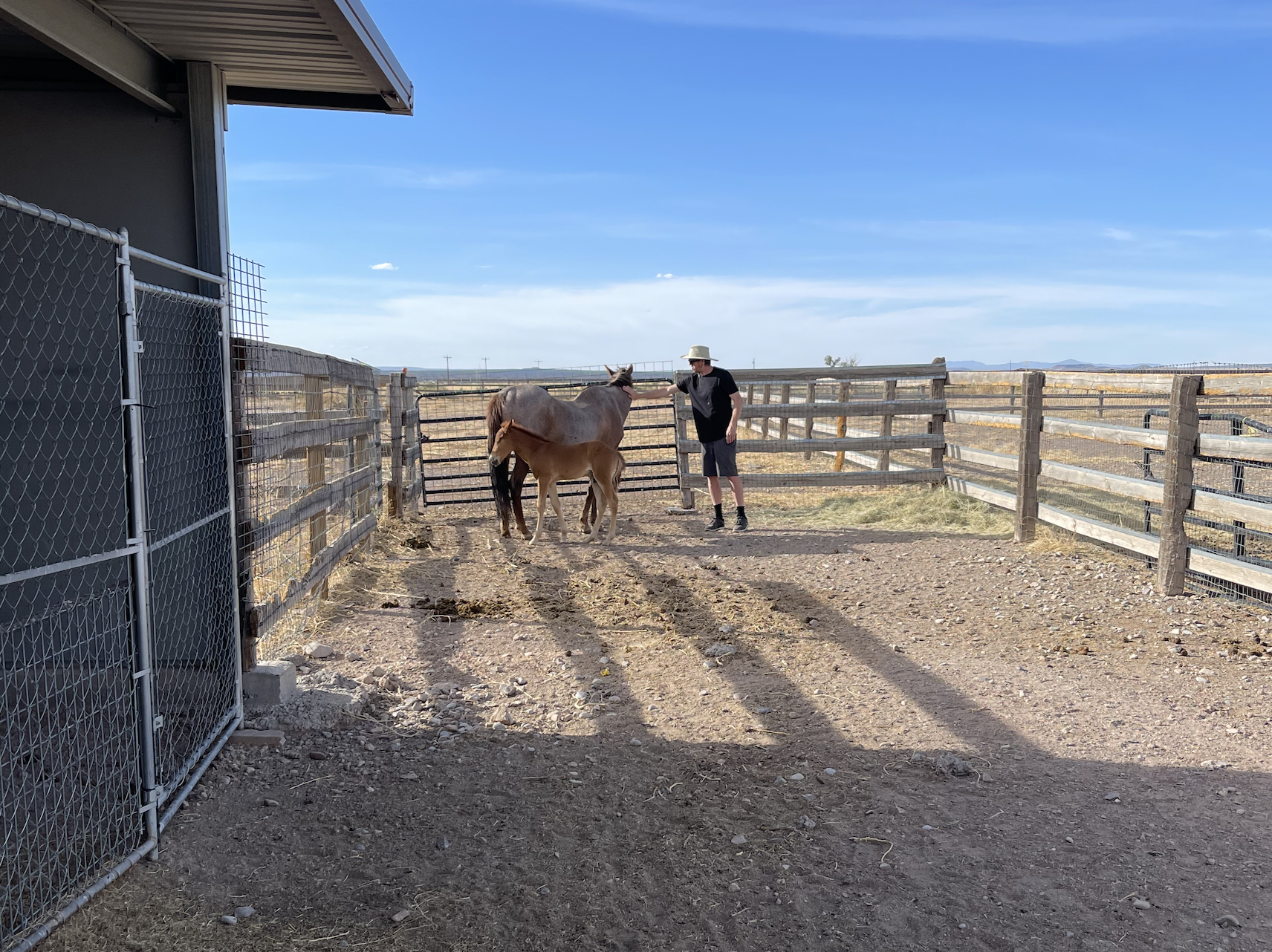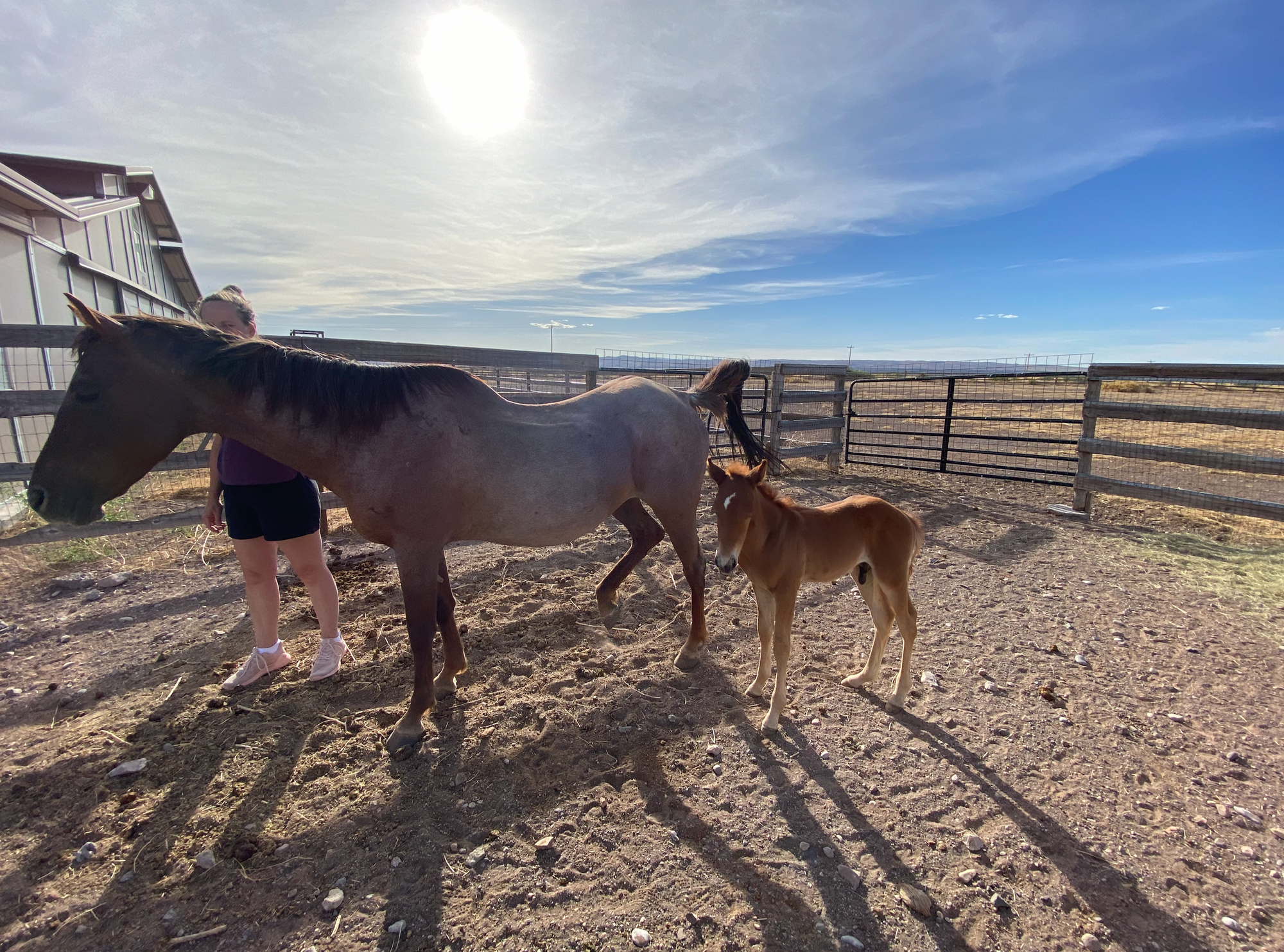 I leave you all with a few pictures of the old mare and her baby colt that we rescued from being sent to a packing house in Mexico as they arrived at our ranch yesterday: