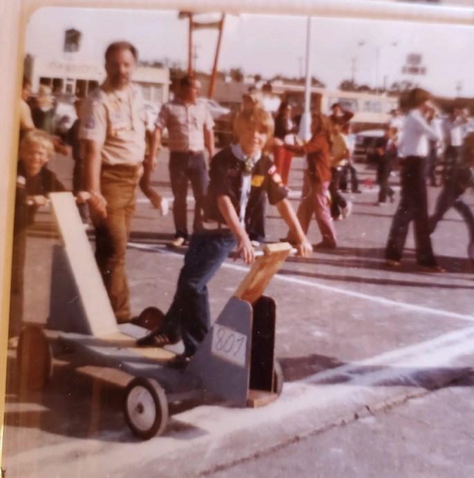 I leave you with this deep thought and an old picture that a classmate of mine sent to me yesterday on text when he was checking on me. You ever heard of the Push-Me-Pull-Me competition in Cub Scouts? The idea, as I recall, was to have one dude push the other guy on a cart for 50 yards and then change positions and race back to the starting point. We designed our PMPM cart with handles on both sides so we didn’t have to reverse the direction at the change point. We won big time. (Side note: I think that’s Neil Patrick Harris in that image with me.)