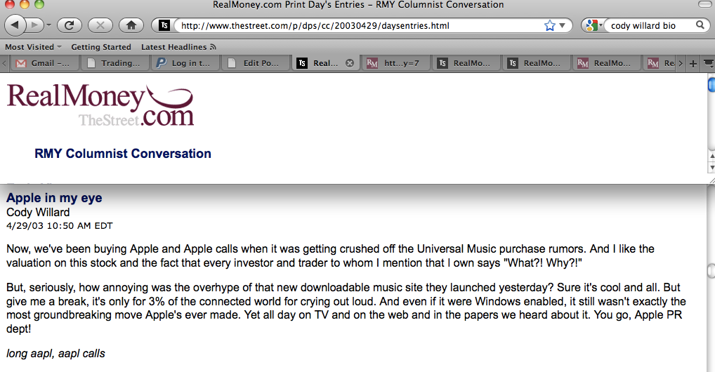 I bought AAPL at a split-adjusted 40 cents per share or so back in March 2003 and as I’ve said for years — I plan to hold AAPL forever in my personal account. It’s still a great company and it’d have to drop by 50% from here to make it worthwhile selling those shares and paying the taxes on them. I do think AAPL is valuation-stretched here and might bob around here or $150 or so for a year or two.