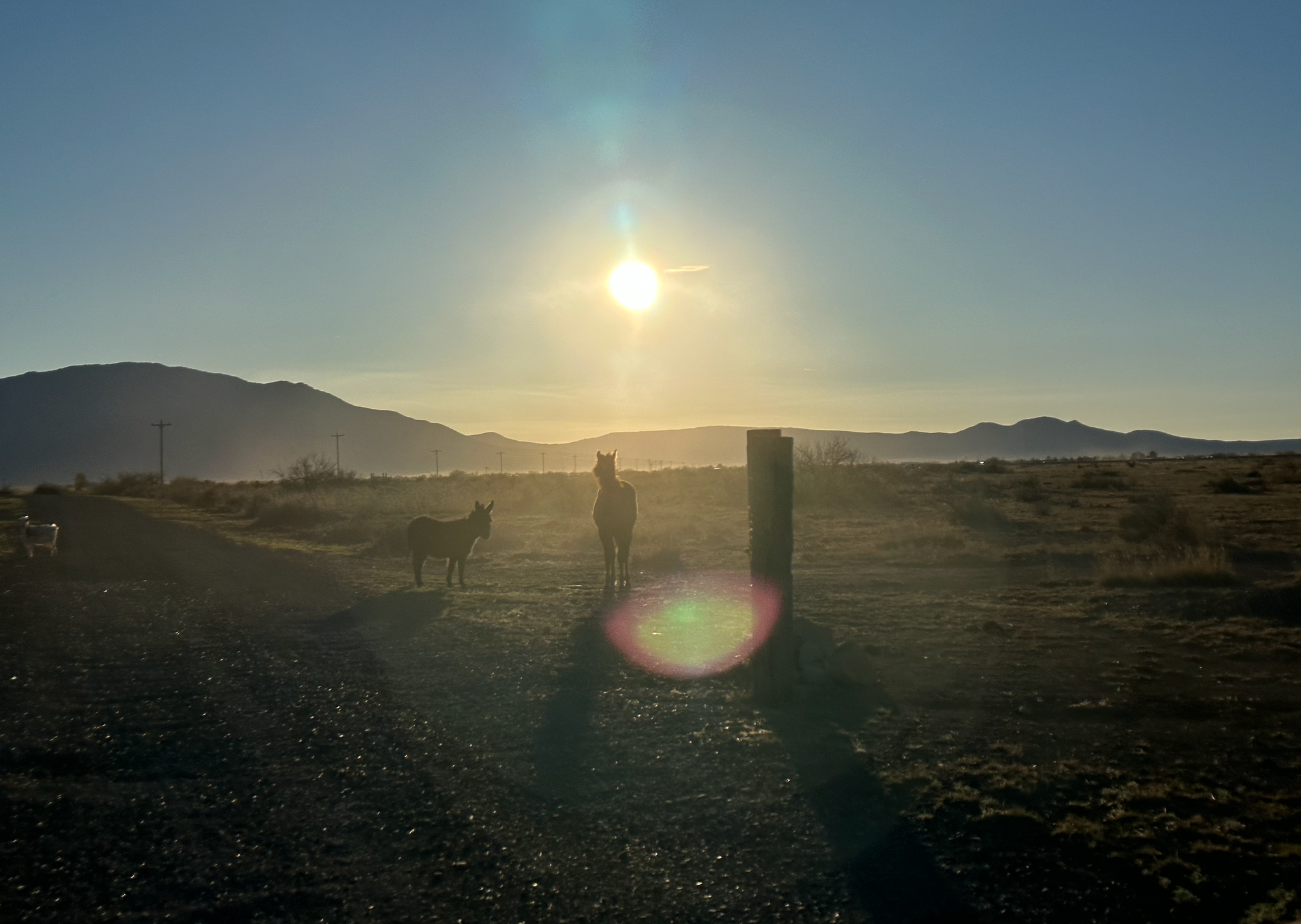 That’s a wrap. I leave you with a couple pics from my ride to and from work this week. The first shot has our colt, our mini donkey (named Dawn Key Willard, get it?) and girl goat in it.