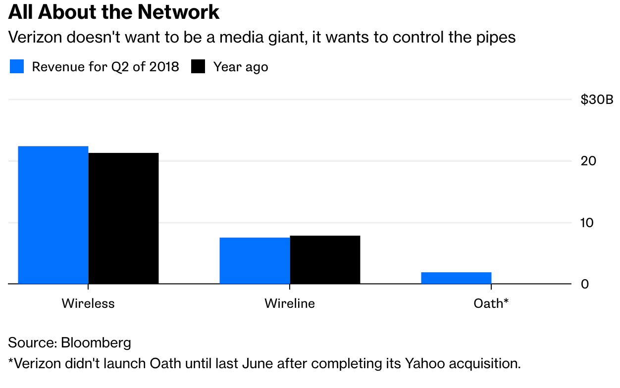 Content at Verizon via Verizon’s Oath business, which is comprised of Yahoo and AOL, is about 6% of Verizon’s revenue. I hope they sell Oath and become a 100%-Communications/5G company.