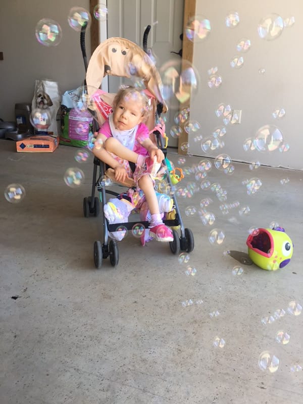 Finally, here are three of the most recent pictures from my phone, featuring wild horses playing golf, a Pyrenees puppy trying to jump on a trampoline and the only kind of bubbles that I thoroughly enjoy:
