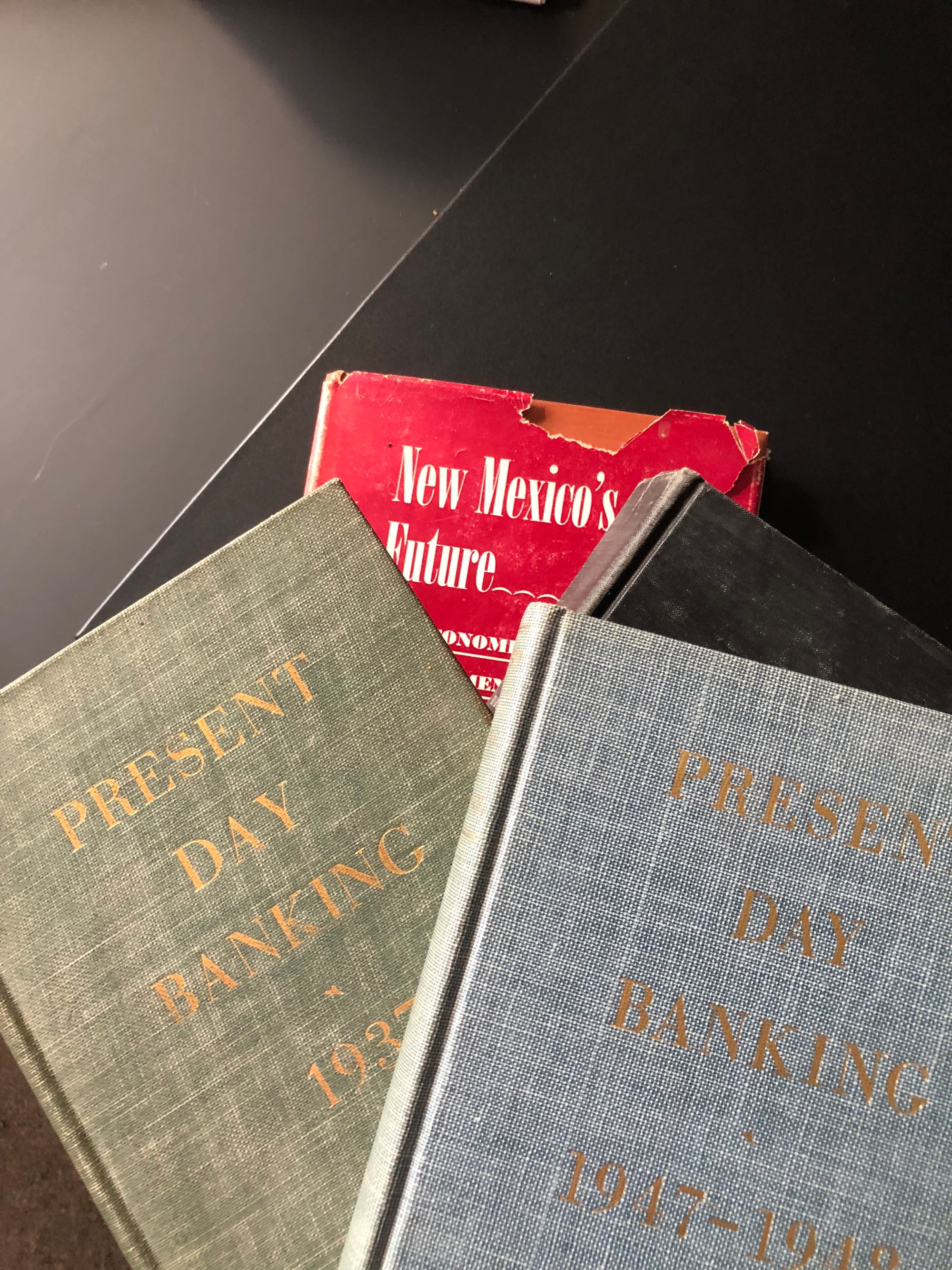 A few other books I’m reading right now and am incorporating into my application of past times to present to the most likely future(s) come from some that I salvaged from my wife’s late grandfather who was a small town railroad worker turned banker who also was mayor and beloved by the whole of Lincoln County, NM. You won’t believe the differences in tone from the bankers in 1937 (calls for collectivism as it was Great Depression time) to 1947 (calls for government deregulation as it was boom time). Sound familiar?