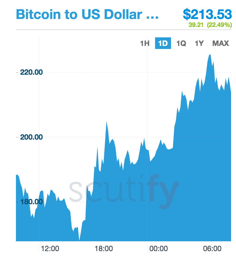 One last thought — all this analysis of government fiat currency wars underscores why some folks believe Bitcoin is a long-term game changer. $BTC up 22% today, which is, well, just a little bit more than the Swiss Franc.