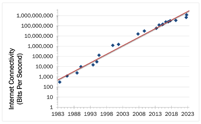 Another important hockey stick that has far-reaching implications is the growth of internet speeds over time. Bandwidth increases follow a similar curve as compute power, roughly doubling every two years. This rapid growth in internet bandwidth has enabled everything from The App Revolution, The Streaming Revolution, The Internet of Things (IoT) Revolution, and will soon help enable The Robotics Revolution and many more Revolutions to come. Ever cheaper and faster internet essentially lowers the cost of information itself, thereby enabling thousands of new applications and unlocking trillions of dollars of value in the process.