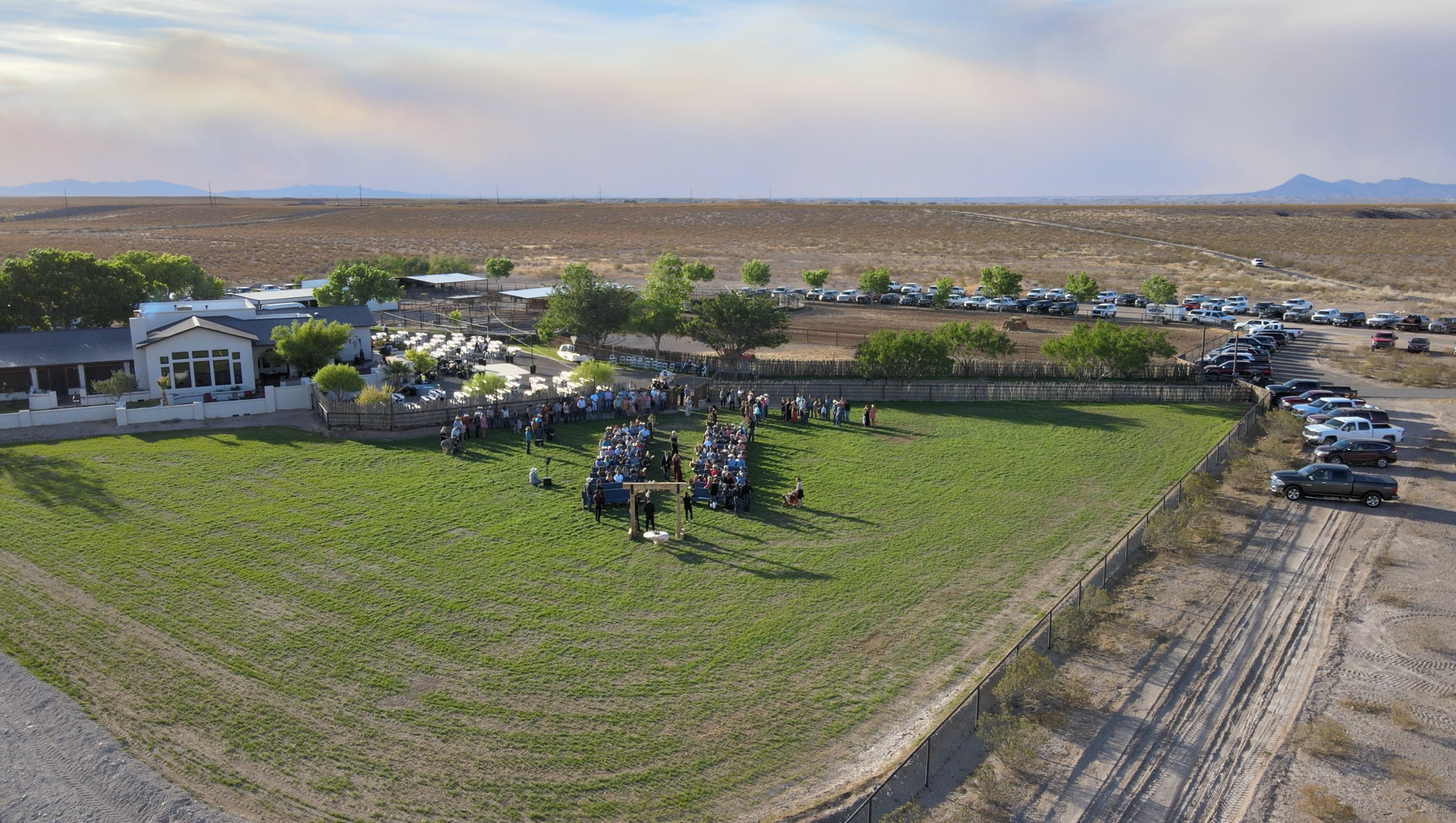 I leave you with a shot from my drone that I took during my wife’s sister’s daughter’s wedding last weekend in Caballo, NM. You can see the smoke from the giant Black Fire forest fire in the background: