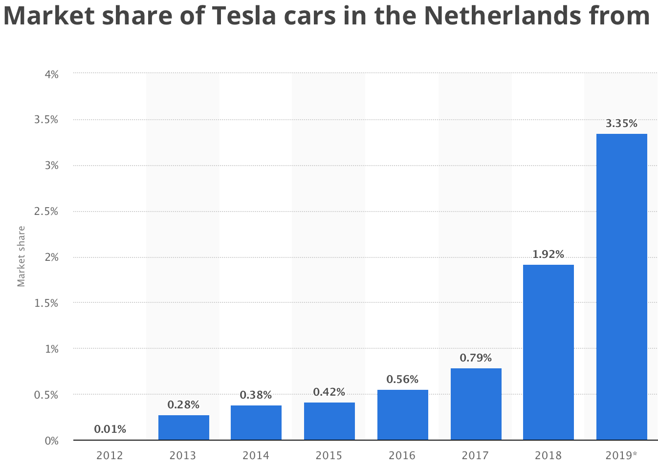 A. Yes, here’s a good chart that shows Tesla’s market share growth in the Netherlands: