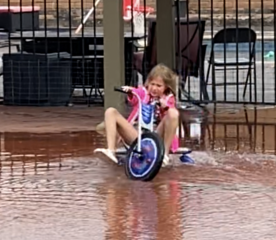 I leave you with this picture of a hot rodding little rock star hitting puddles: