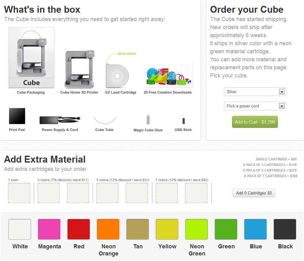 $1300 isn’t quite there yet in terms of mass-adoption price point—but it’s getting close. $1300 is like buying 2.6 basic ipads, when the price drops to a two ipad multiple that’s when I think Cubify will see some real traction. DDD is planning to let people sell their designs and creations right on Cubify; any real revenue from being the Amazon for 3d printed objects is likely 2-4 years away. What isn’t that distant is the revenue from “Add Extra Material”.