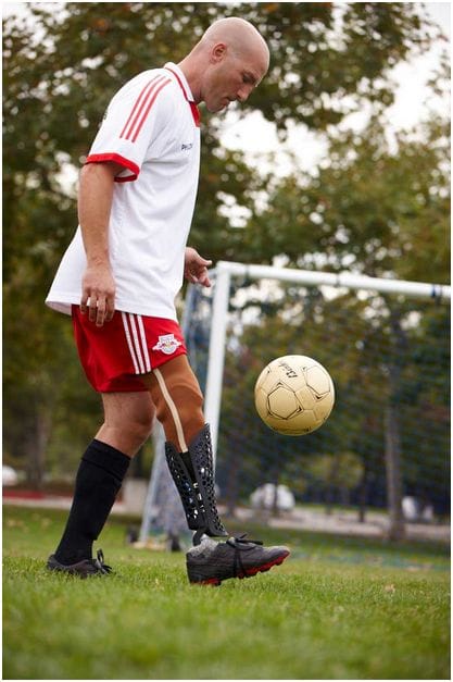 Almost no analyst is talking about DDD’s medical printing business but it looks really compelling to me. In the next five years hospitals will print everything from hearing aids to basic medical devices. What really excites me in the short term is the prosthesis market. In May DDD bought Bespoke Innovations, a company that specializes in printed custom fit prosthetics. Check out this picture of a soccer player with a Bespoke lower leg.