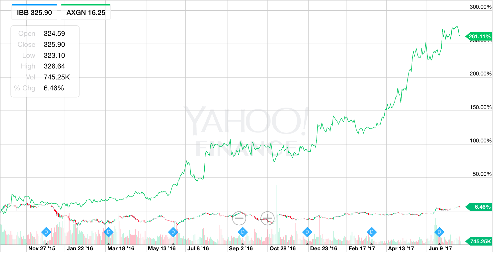 So, without scrutiny on the pricing models, our thesis is probably wrong. I shorted this thing, I think around $315, and around $300 again at one time or two. It has been a good relatively short, frankly, because it is a hedge against so many of our huge winning longs. And we have so many long stocks that are up 50% or 300% in the last two years while I’ve been bearish and/or short the biotech sector as a hedge against those longs. In fact, Axogen AXGN, the biotech stock I bought at the same time I initially put the IBB short hedge on is indeed up nearly 300% from our cost basis vs the IBB being up 5% or so.