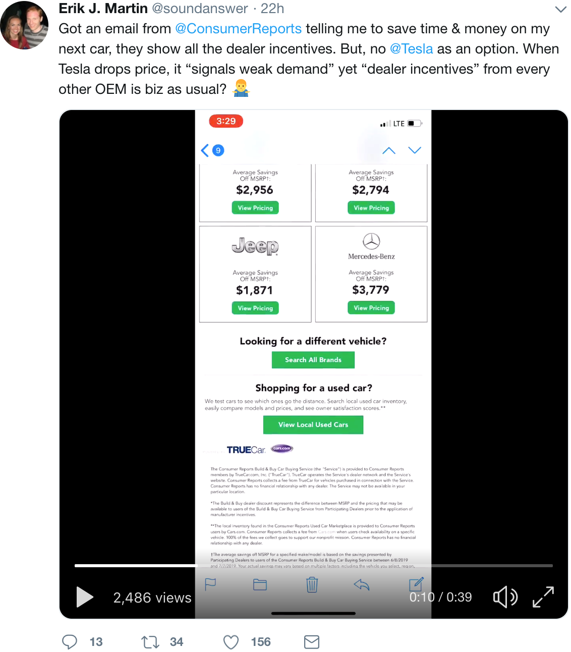 Let’s keep going here, as I came across this tweet today that further exposes the ridiculous bias that Consumer Reports has to promote non-Tesla cars in their car reviews: