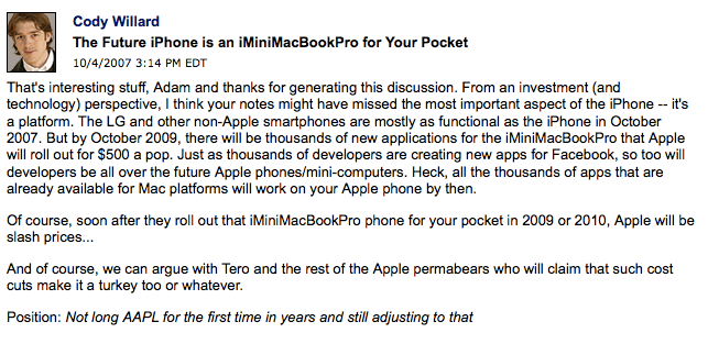 I also got a response from a very long-time Trading With Cody subscriber after I sent out that article looking back at my Apple analysis from fifteen years ago in which he asked me to stop looking back at my old analysis so much.
