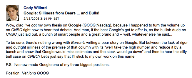 | Google – GOOG | GOOG | Long | January 2004 | $45 | $1,726.58 | 3736.84% | 16 | 25.60% | $1,500 | 13% |