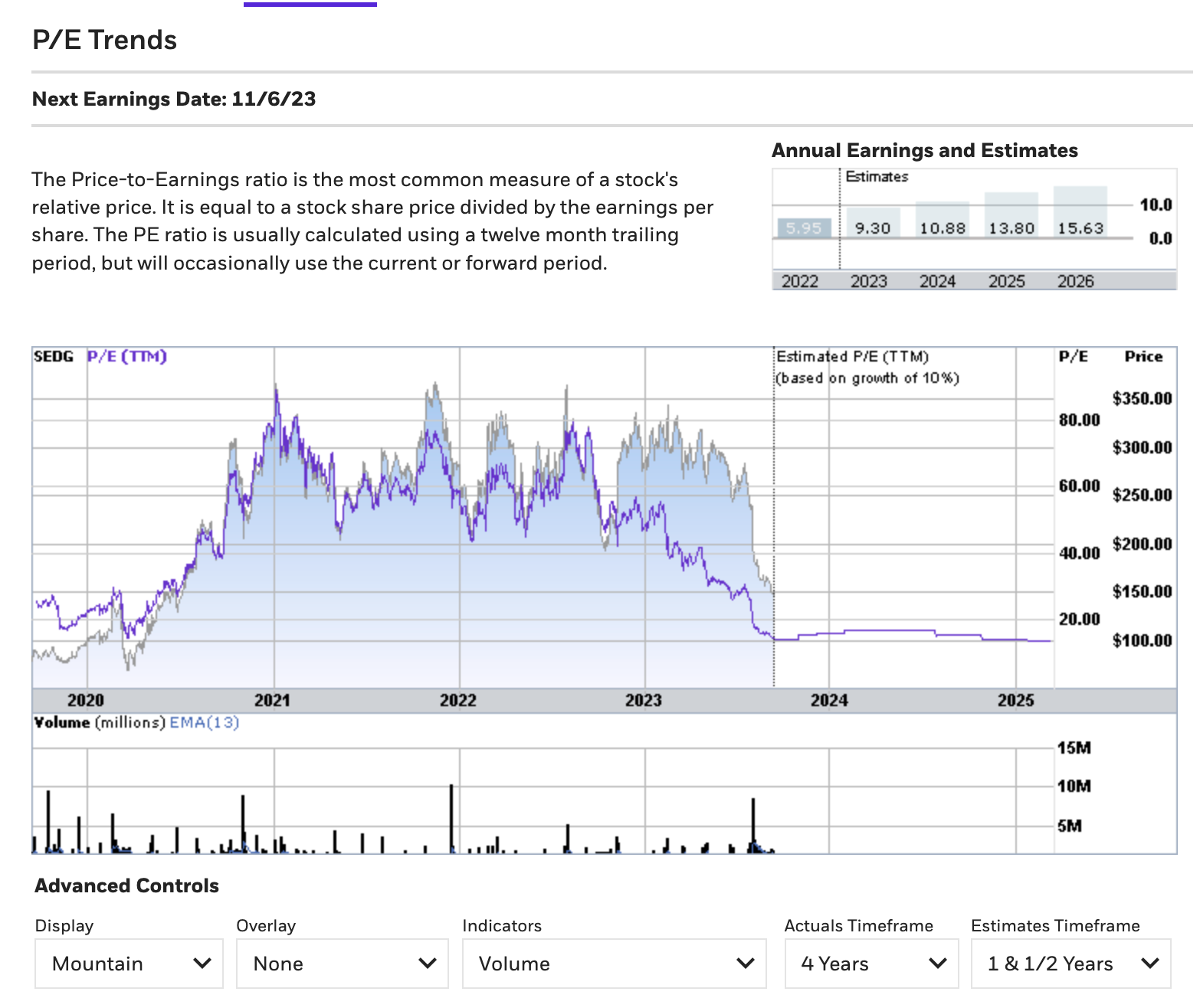 A. It’s pretty close to getting cheap but earnings estimates have already come down quite a bit over the last few months. SEDG is trading at as low of a forward P/E as it ever has, including the 2020 Covid Crash lows but to really be considered “terribly cheap,” I’d want to see it maybe 20% lower than here.